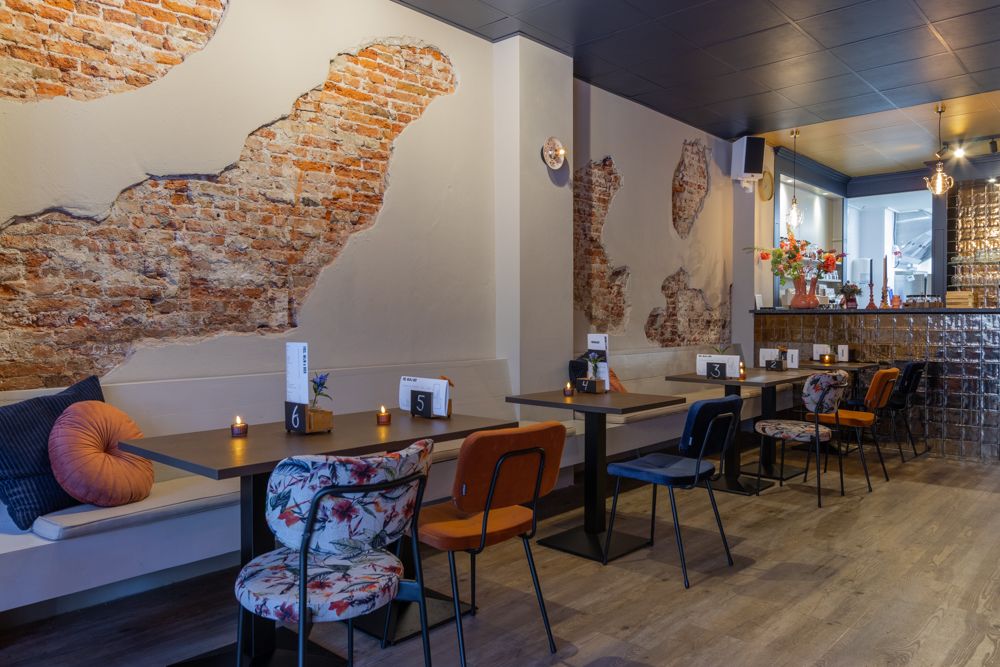 Een warme en gezellige ruimte waar een combinatie van kleuren, structuren, vormen en leuke accessoires een geheel vormen waar klanten en personeel zich thuis voelen.