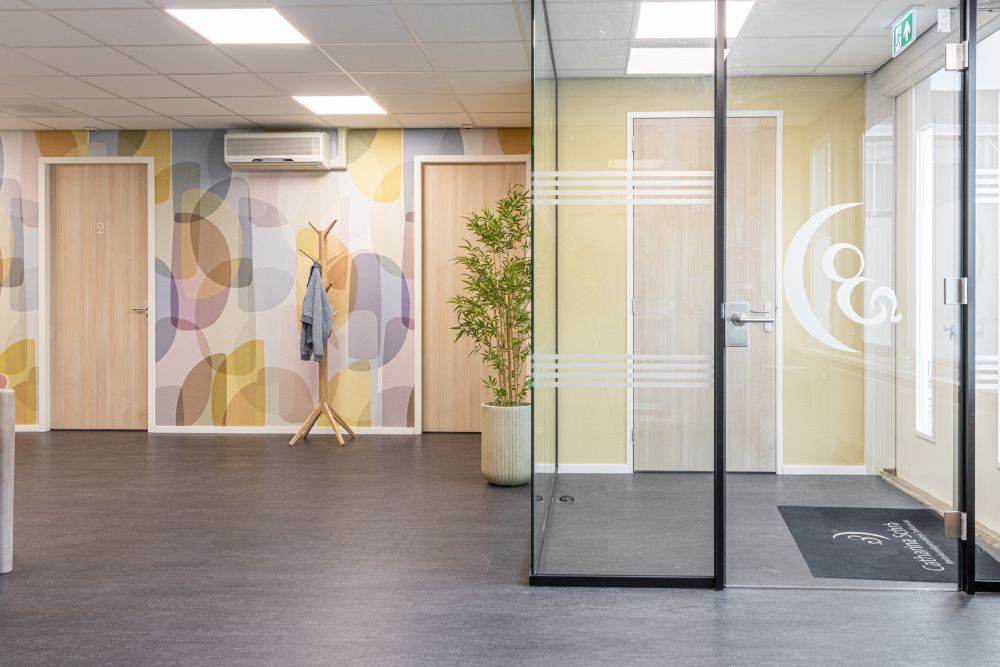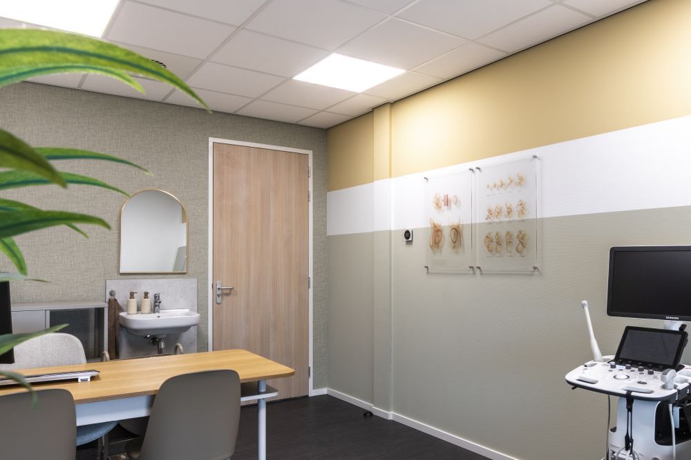 Voor de Verloskundigenpraktijk Catharina Schrader in Dokkum heb ik een interieurontwerp gemaakt dat de identiteit en de sfeer van de praktijk versterkt. Bij dit ontwerp heb ik zorgvuldig de kleuren afgestemd op de kleuren van de huisstijl, zodat er een herkenbaar geheel ontstaat.